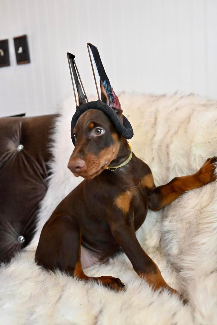 Her ear crop and tail dock were performed by a licensed veterinarian, and she is current on age-appropriate vaccines and deworming. We recommend a licensed vet exam within 72 hours of arrival to activate our health guarantee. Full details are available in our Return & Refund Policy.